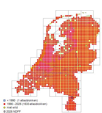 Bron: FLORON - Gemodelleerd op basis van waarnemingen uit de NDFF voor de periode 2000-2021.