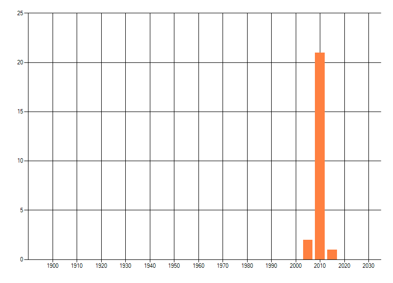 Het aantal atlasblokken (5x5 km) waarin de soort is gemeld binnen een periode van vijf jaar (vanaf 1980) of twintig jaar. Niet gecorrigeerd voor waarnemersinspanning en het aantal doorgegeven waarnemingen kan sterk variëren per periode, dus een trend in verspreiding kan hier niet direct uit worden afgelezen. Het opgegeven jaartal is het eerste jaar van de periode. Bron: gevalideerde waarnemingen uit de NDFF.
