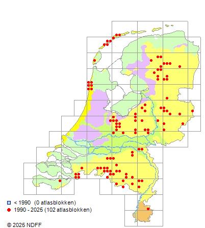 Bron: FLORON - Gemodelleerd op basis van waarnemingen uit de NDFF voor de periode 2000-2021.