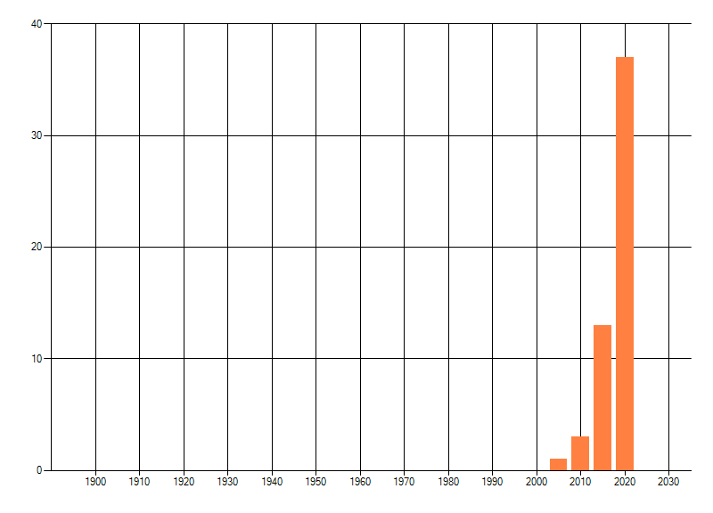 Het aantal atlasblokken (5x5 km) waarin de soort is gemeld binnen een periode van vijf jaar (vanaf 1980) of twintig jaar. Niet gecorrigeerd voor waarnemersinspanning en het aantal doorgegeven waarnemingen kan sterk variëren per periode, dus een trend in verspreiding kan hier niet direct uit worden afgelezen. Het opgegeven jaartal is het eerste jaar van de periode. Bron: gevalideerde waarnemingen uit de NDFF.