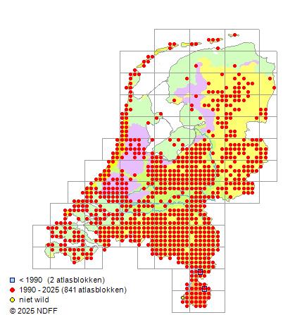 Bron: FLORON - Gemodelleerd op basis van waarnemingen uit de NDFF voor de periode 2000-2021.