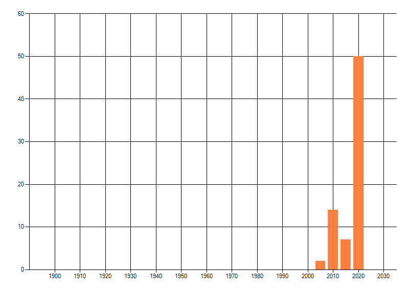 Het aantal atlasblokken (5x5 km) waarin de soort is gemeld binnen een periode van vijf jaar (vanaf 1980) of twintig jaar. Niet gecorrigeerd voor waarnemersinspanning en het aantal doorgegeven waarnemingen kan sterk variëren per periode, dus een trend in verspreiding kan hier niet direct uit worden afgelezen. Het opgegeven jaartal is het eerste jaar van de periode. Bron: gevalideerde waarnemingen uit de NDFF.