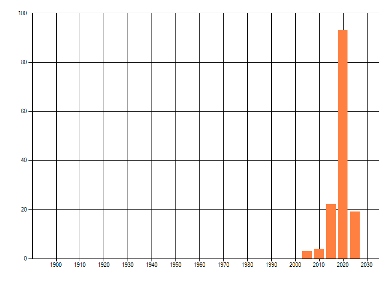Het aantal atlasblokken (5x5 km) waarin de soort is gemeld binnen een periode van vijf jaar (vanaf 1980) of twintig jaar. Niet gecorrigeerd voor waarnemersinspanning en het aantal doorgegeven waarnemingen kan sterk variëren per periode, dus een trend in verspreiding kan hier niet direct uit worden afgelezen. Het opgegeven jaartal is het eerste jaar van de periode. Bron: gevalideerde waarnemingen uit de NDFF.