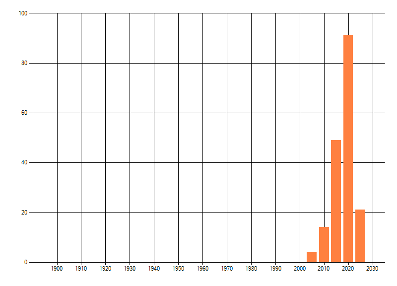 Het aantal atlasblokken (5x5 km) waarin de soort is gemeld binnen een periode van vijf jaar (vanaf 1980) of twintig jaar. Niet gecorrigeerd voor waarnemersinspanning en het aantal doorgegeven waarnemingen kan sterk variëren per periode, dus een trend in verspreiding kan hier niet direct uit worden afgelezen. Het opgegeven jaartal is het eerste jaar van de periode. Bron: gevalideerde waarnemingen uit de NDFF.
