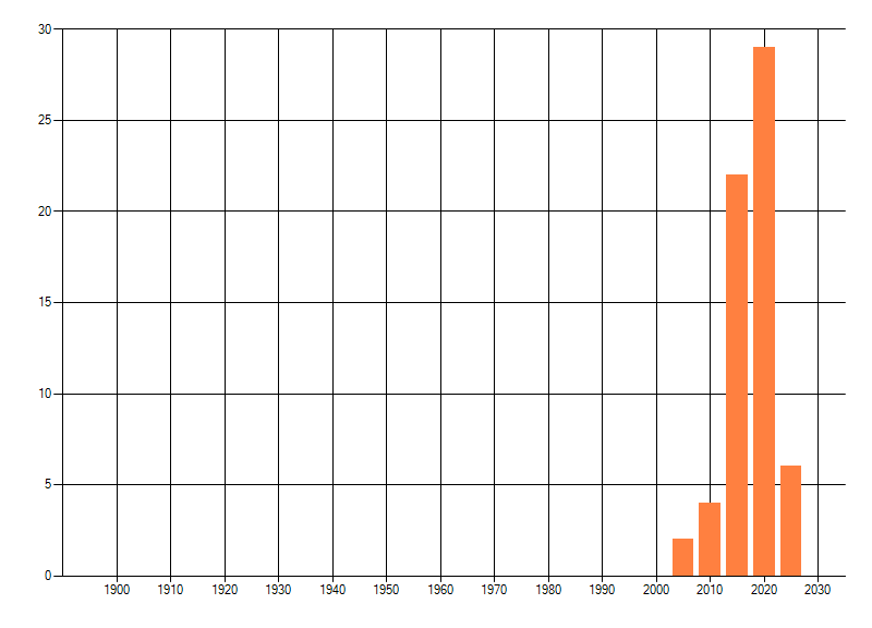 Het aantal atlasblokken (5x5 km) waarin de soort is gemeld binnen een periode van vijf jaar (vanaf 1980) of twintig jaar. Niet gecorrigeerd voor waarnemersinspanning en het aantal doorgegeven waarnemingen kan sterk variëren per periode, dus een trend in verspreiding kan hier niet direct uit worden afgelezen. Het opgegeven jaartal is het eerste jaar van de periode. Bron: gevalideerde waarnemingen uit de NDFF.