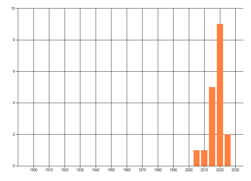 Het aantal atlasblokken (5x5 km) waarin de soort is gemeld binnen een periode van vijf jaar (vanaf 1980) of twintig jaar. Niet gecorrigeerd voor waarnemersinspanning en het aantal doorgegeven waarnemingen kan sterk variëren per periode, dus een trend in verspreiding kan hier niet direct uit worden afgelezen. Het opgegeven jaartal is het eerste jaar van de periode. Bron: gevalideerde waarnemingen uit de NDFF.