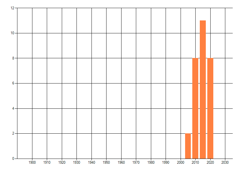 Het aantal atlasblokken (5x5 km) waarin de soort is gemeld binnen een periode van vijf jaar (vanaf 1980) of twintig jaar. Niet gecorrigeerd voor waarnemersinspanning en het aantal doorgegeven waarnemingen kan sterk variëren per periode, dus een trend in verspreiding kan hier niet direct uit worden afgelezen. Het opgegeven jaartal is het eerste jaar van de periode. Bron: gevalideerde waarnemingen uit de NDFF.