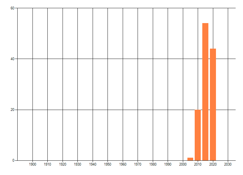Het aantal atlasblokken (5x5 km) waarin de soort is gemeld binnen een periode van vijf jaar (vanaf 1980) of twintig jaar. Niet gecorrigeerd voor waarnemersinspanning en het aantal doorgegeven waarnemingen kan sterk variëren per periode, dus een trend in verspreiding kan hier niet direct uit worden afgelezen. Het opgegeven jaartal is het eerste jaar van de periode. Bron: gevalideerde waarnemingen uit de NDFF.