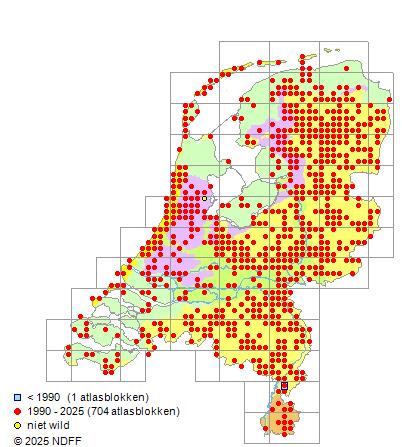 Bron: FLORON - Gemodelleerd op basis van waarnemingen uit de NDFF voor de periode 2000-2021.