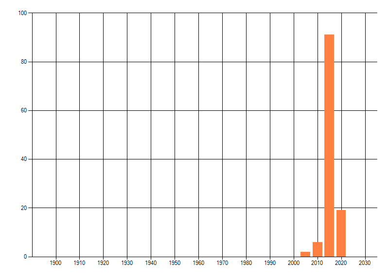 Het aantal atlasblokken (5x5 km) waarin de soort is gemeld binnen een periode van vijf jaar (vanaf 1980) of twintig jaar. Niet gecorrigeerd voor waarnemersinspanning en het aantal doorgegeven waarnemingen kan sterk variëren per periode, dus een trend in verspreiding kan hier niet direct uit worden afgelezen. Het opgegeven jaartal is het eerste jaar van de periode. Bron: gevalideerde waarnemingen uit de NDFF.