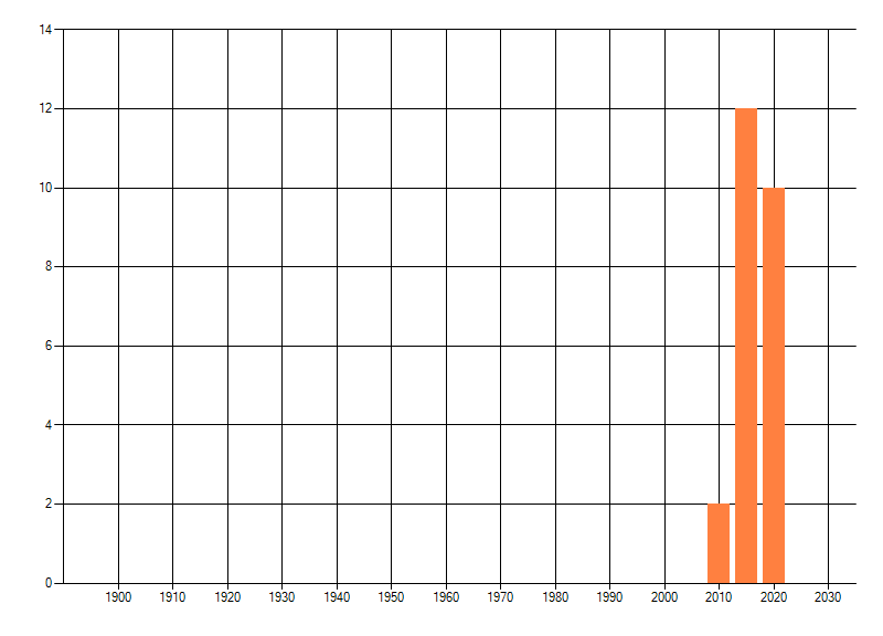 Het aantal atlasblokken (5x5 km) waarin de soort is gemeld binnen een periode van vijf jaar (vanaf 1980) of twintig jaar. Niet gecorrigeerd voor waarnemersinspanning en het aantal doorgegeven waarnemingen kan sterk variëren per periode, dus een trend in verspreiding kan hier niet direct uit worden afgelezen. Het opgegeven jaartal is het eerste jaar van de periode. Bron: gevalideerde waarnemingen uit de NDFF.