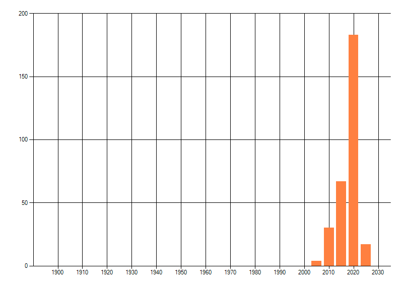 Het aantal atlasblokken (5x5 km) waarin de soort is gemeld binnen een periode van vijf jaar (vanaf 1980) of twintig jaar. Niet gecorrigeerd voor waarnemersinspanning en het aantal doorgegeven waarnemingen kan sterk variëren per periode, dus een trend in verspreiding kan hier niet direct uit worden afgelezen. Het opgegeven jaartal is het eerste jaar van de periode. Bron: gevalideerde waarnemingen uit de NDFF.