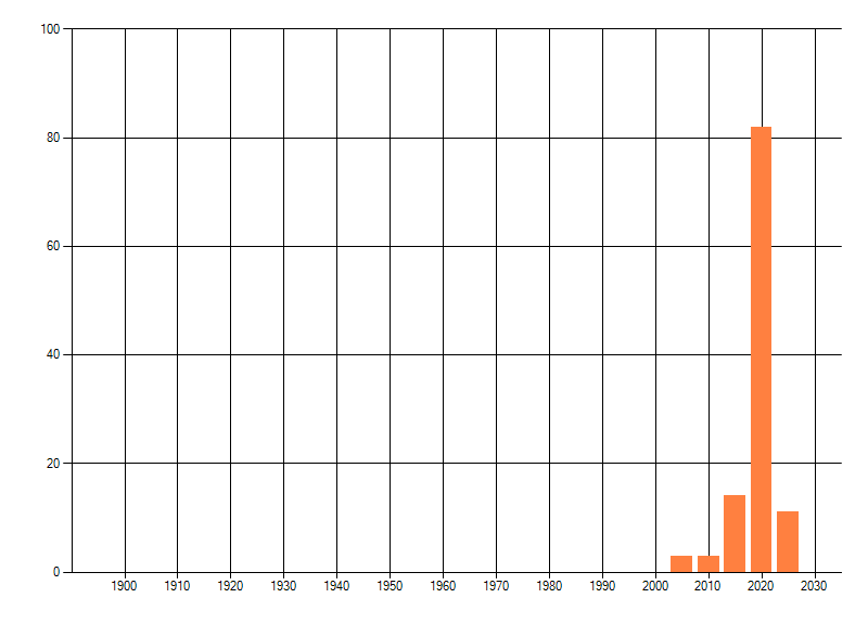 Het aantal atlasblokken (5x5 km) waarin de soort is gemeld binnen een periode van vijf jaar (vanaf 1980) of twintig jaar. Niet gecorrigeerd voor waarnemersinspanning en het aantal doorgegeven waarnemingen kan sterk variëren per periode, dus een trend in verspreiding kan hier niet direct uit worden afgelezen. Het opgegeven jaartal is het eerste jaar van de periode. Bron: gevalideerde waarnemingen uit de NDFF.
