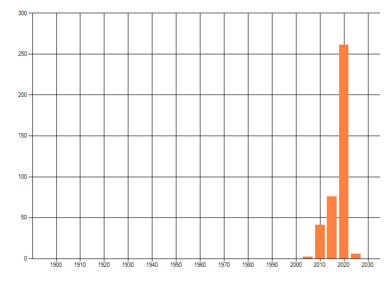 Het aantal atlasblokken (5x5 km) waarin de soort is gemeld binnen een periode van vijf jaar (vanaf 1980) of twintig jaar. Niet gecorrigeerd voor waarnemersinspanning en het aantal doorgegeven waarnemingen kan sterk variëren per periode, dus een trend in verspreiding kan hier niet direct uit worden afgelezen. Het opgegeven jaartal is het eerste jaar van de periode. Bron: gevalideerde waarnemingen uit de NDFF.