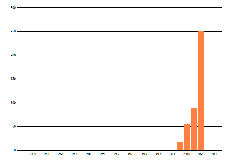 Het aantal atlasblokken (5x5 km) waarin de soort is gemeld binnen een periode van vijf jaar (vanaf 1980) of twintig jaar. Niet gecorrigeerd voor waarnemersinspanning en het aantal doorgegeven waarnemingen kan sterk variëren per periode, dus een trend in verspreiding kan hier niet direct uit worden afgelezen. Het opgegeven jaartal is het eerste jaar van de periode. Bron: gevalideerde waarnemingen uit de NDFF.