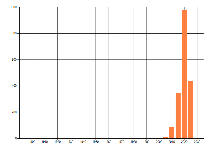 Het aantal atlasblokken (5x5 km) waarin de soort is gemeld binnen een periode van vijf jaar (vanaf 1980) of twintig jaar. Niet gecorrigeerd voor waarnemersinspanning en het aantal doorgegeven waarnemingen kan sterk variëren per periode, dus een trend in verspreiding kan hier niet direct uit worden afgelezen. Het opgegeven jaartal is het eerste jaar van de periode. Bron: gevalideerde waarnemingen uit de NDFF.