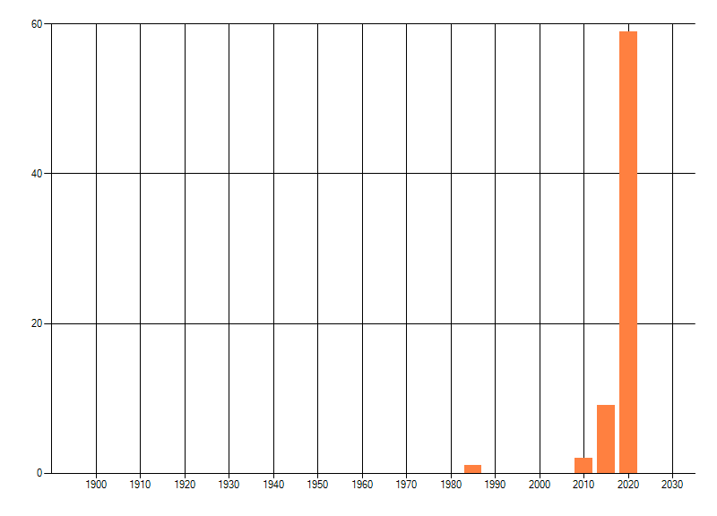 Het aantal atlasblokken (5x5 km) waarin de soort is gemeld binnen een periode van vijf jaar (vanaf 1980) of twintig jaar. Niet gecorrigeerd voor waarnemersinspanning en het aantal doorgegeven waarnemingen kan sterk variëren per periode, dus een trend in verspreiding kan hier niet direct uit worden afgelezen. Het opgegeven jaartal is het eerste jaar van de periode. Bron: gevalideerde waarnemingen uit de NDFF.