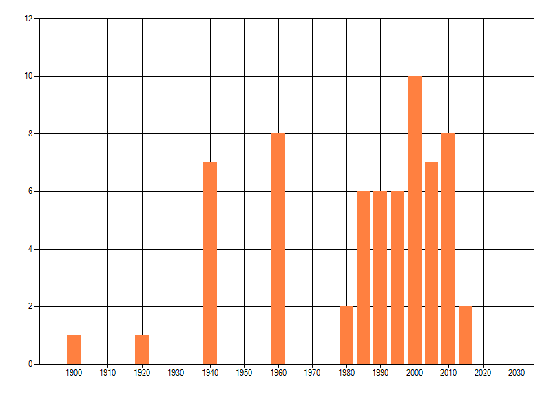 Het aantal atlasblokken (5x5 km) waarin de soort is gemeld binnen een periode van vijf jaar (vanaf 1980) of twintig jaar. Niet gecorrigeerd voor waarnemersinspanning en het aantal doorgegeven waarnemingen kan sterk variëren per periode, dus een trend in verspreiding kan hier niet direct uit worden afgelezen. Het opgegeven jaartal is het eerste jaar van de periode. Bron: gevalideerde waarnemingen uit de NDFF.