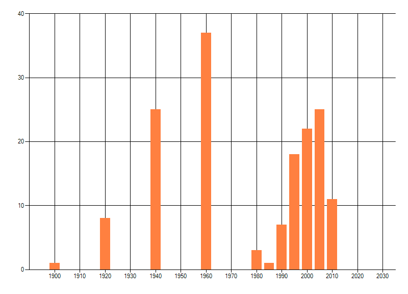 Het aantal atlasblokken (5x5 km) waarin de soort is gemeld binnen een periode van vijf jaar (vanaf 1980) of twintig jaar. Niet gecorrigeerd voor waarnemersinspanning en het aantal doorgegeven waarnemingen kan sterk variëren per periode, dus een trend in verspreiding kan hier niet direct uit worden afgelezen. Het opgegeven jaartal is het eerste jaar van de periode. Bron: gevalideerde waarnemingen uit de NDFF.