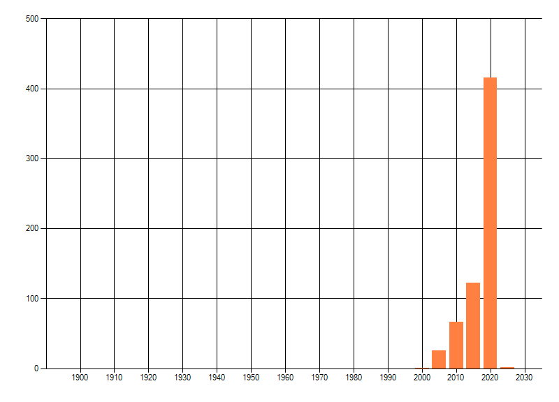 Het aantal atlasblokken (5x5 km) waarin de soort is gemeld binnen een periode van vijf jaar (vanaf 1980) of twintig jaar. Niet gecorrigeerd voor waarnemersinspanning en het aantal doorgegeven waarnemingen kan sterk variëren per periode, dus een trend in verspreiding kan hier niet direct uit worden afgelezen. Het opgegeven jaartal is het eerste jaar van de periode. Bron: gevalideerde waarnemingen uit de NDFF.