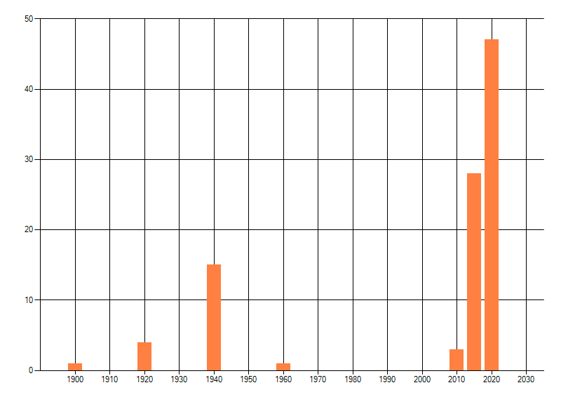 Het aantal atlasblokken (5x5 km) waarin de soort is gemeld binnen een periode van vijf jaar (vanaf 1980) of twintig jaar. Niet gecorrigeerd voor waarnemersinspanning en het aantal doorgegeven waarnemingen kan sterk variëren per periode, dus een trend in verspreiding kan hier niet direct uit worden afgelezen. Het opgegeven jaartal is het eerste jaar van de periode. Bron: gevalideerde waarnemingen uit de NDFF.