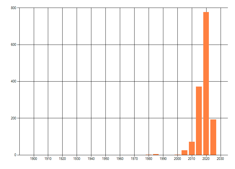 Het aantal atlasblokken (5x5 km) waarin de soort is gemeld binnen een periode van vijf jaar (vanaf 1980) of twintig jaar. Niet gecorrigeerd voor waarnemersinspanning en het aantal doorgegeven waarnemingen kan sterk variëren per periode, dus een trend in verspreiding kan hier niet direct uit worden afgelezen. Het opgegeven jaartal is het eerste jaar van de periode. Bron: gevalideerde waarnemingen uit de NDFF.