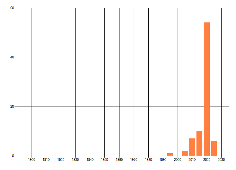Het aantal atlasblokken (5x5 km) waarin de soort is gemeld binnen een periode van vijf jaar (vanaf 1980) of twintig jaar. Niet gecorrigeerd voor waarnemersinspanning en het aantal doorgegeven waarnemingen kan sterk variëren per periode, dus een trend in verspreiding kan hier niet direct uit worden afgelezen. Het opgegeven jaartal is het eerste jaar van de periode. Bron: gevalideerde waarnemingen uit de NDFF.