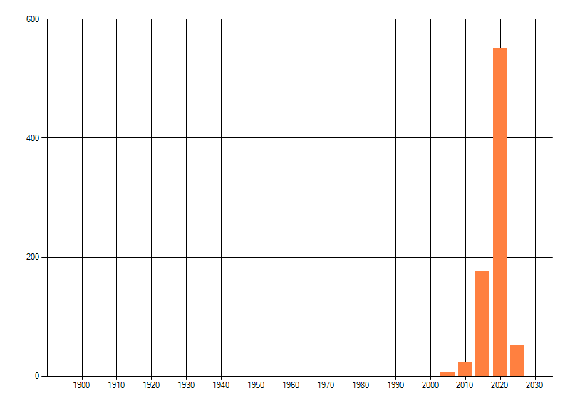Het aantal atlasblokken (5x5 km) waarin de soort is gemeld binnen een periode van vijf jaar (vanaf 1980) of twintig jaar. Niet gecorrigeerd voor waarnemersinspanning en het aantal doorgegeven waarnemingen kan sterk variëren per periode, dus een trend in verspreiding kan hier niet direct uit worden afgelezen. Het opgegeven jaartal is het eerste jaar van de periode. Bron: gevalideerde waarnemingen uit de NDFF.