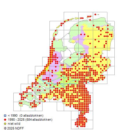 Bron: FLORON - Gemodelleerd op basis van waarnemingen uit de NDFF voor de periode 2000-2021.
