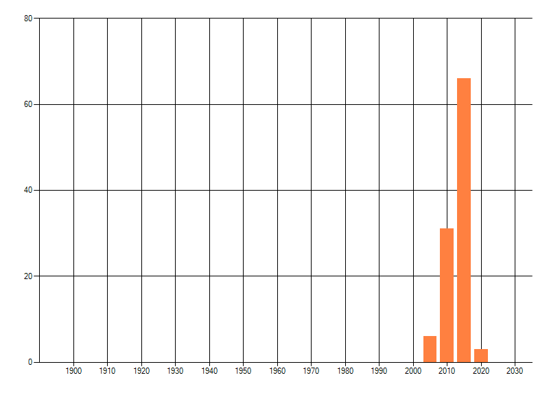 Het aantal atlasblokken (5x5 km) waarin de soort is gemeld binnen een periode van vijf jaar (vanaf 1980) of twintig jaar. Niet gecorrigeerd voor waarnemersinspanning en het aantal doorgegeven waarnemingen kan sterk variëren per periode, dus een trend in verspreiding kan hier niet direct uit worden afgelezen. Het opgegeven jaartal is het eerste jaar van de periode. Bron: gevalideerde waarnemingen uit de NDFF.