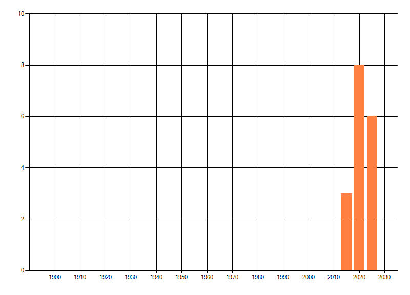 Het aantal atlasblokken (5x5 km) waarin de soort is gemeld binnen een periode van vijf jaar (vanaf 1980) of twintig jaar. Niet gecorrigeerd voor waarnemersinspanning en het aantal doorgegeven waarnemingen kan sterk variëren per periode, dus een trend in verspreiding kan hier niet direct uit worden afgelezen. Het opgegeven jaartal is het eerste jaar van de periode. Bron: gevalideerde waarnemingen uit de NDFF.