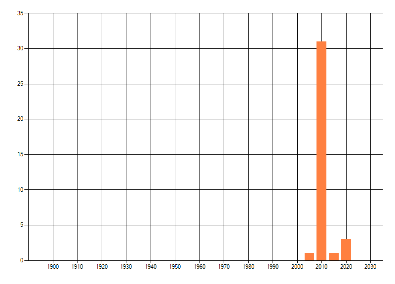 Het aantal atlasblokken (5x5 km) waarin de soort is gemeld binnen een periode van vijf jaar (vanaf 1980) of twintig jaar. Niet gecorrigeerd voor waarnemersinspanning en het aantal doorgegeven waarnemingen kan sterk variëren per periode, dus een trend in verspreiding kan hier niet direct uit worden afgelezen. Het opgegeven jaartal is het eerste jaar van de periode. Bron: gevalideerde waarnemingen uit de NDFF.