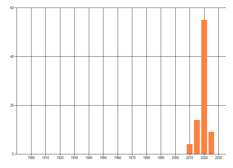 Het aantal atlasblokken (5x5 km) waarin de soort is gemeld binnen een periode van vijf jaar (vanaf 1980) of twintig jaar. Niet gecorrigeerd voor waarnemersinspanning en het aantal doorgegeven waarnemingen kan sterk variëren per periode, dus een trend in verspreiding kan hier niet direct uit worden afgelezen. Het opgegeven jaartal is het eerste jaar van de periode. Bron: gevalideerde waarnemingen uit de NDFF.