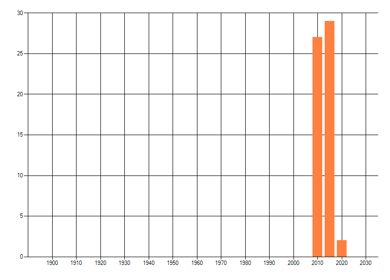 Het aantal atlasblokken (5x5 km) waarin de soort is gemeld binnen een periode van vijf jaar (vanaf 1980) of twintig jaar. Niet gecorrigeerd voor waarnemersinspanning en het aantal doorgegeven waarnemingen kan sterk variëren per periode, dus een trend in verspreiding kan hier niet direct uit worden afgelezen. Het opgegeven jaartal is het eerste jaar van de periode. Bron: gevalideerde waarnemingen uit de NDFF.