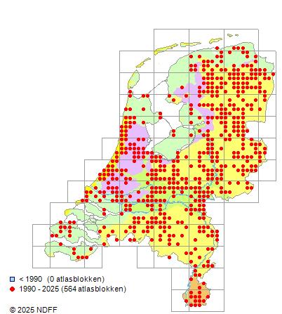 Bron: FLORON - Gemodelleerd op basis van waarnemingen uit de NDFF voor de periode 2000-2021.