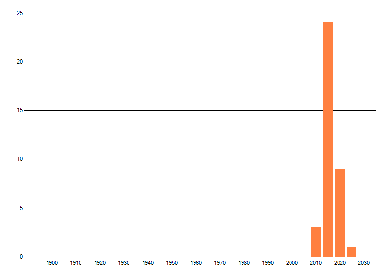 Het aantal atlasblokken (5x5 km) waarin de soort is gemeld binnen een periode van vijf jaar (vanaf 1980) of twintig jaar. Niet gecorrigeerd voor waarnemersinspanning en het aantal doorgegeven waarnemingen kan sterk variëren per periode, dus een trend in verspreiding kan hier niet direct uit worden afgelezen. Het opgegeven jaartal is het eerste jaar van de periode. Bron: gevalideerde waarnemingen uit de NDFF.