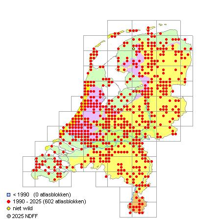 Bron: FLORON - Gemodelleerd op basis van waarnemingen uit de NDFF voor de periode 2000-2021.