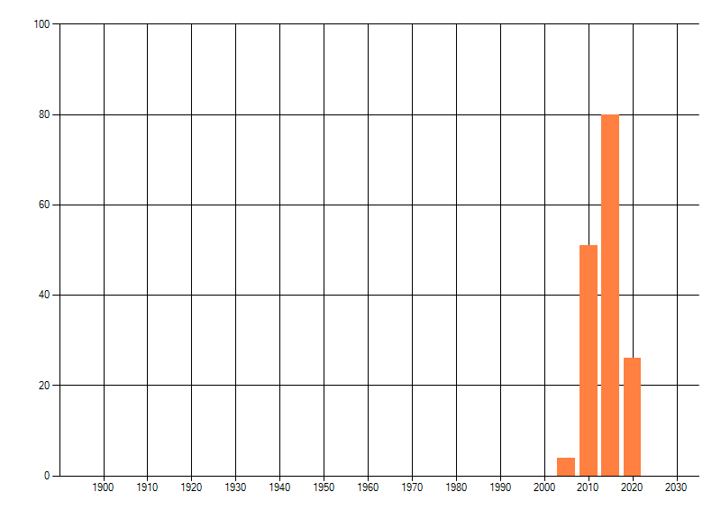 Het aantal atlasblokken (5x5 km) waarin de soort is gemeld binnen een periode van vijf jaar (vanaf 1980) of twintig jaar. Niet gecorrigeerd voor waarnemersinspanning en het aantal doorgegeven waarnemingen kan sterk variëren per periode, dus een trend in verspreiding kan hier niet direct uit worden afgelezen. Het opgegeven jaartal is het eerste jaar van de periode. Bron: gevalideerde waarnemingen uit de NDFF.