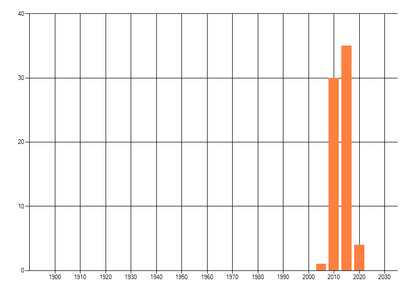 Het aantal atlasblokken (5x5 km) waarin de soort is gemeld binnen een periode van vijf jaar (vanaf 1980) of twintig jaar. Niet gecorrigeerd voor waarnemersinspanning en het aantal doorgegeven waarnemingen kan sterk variëren per periode, dus een trend in verspreiding kan hier niet direct uit worden afgelezen. Het opgegeven jaartal is het eerste jaar van de periode. Bron: gevalideerde waarnemingen uit de NDFF.