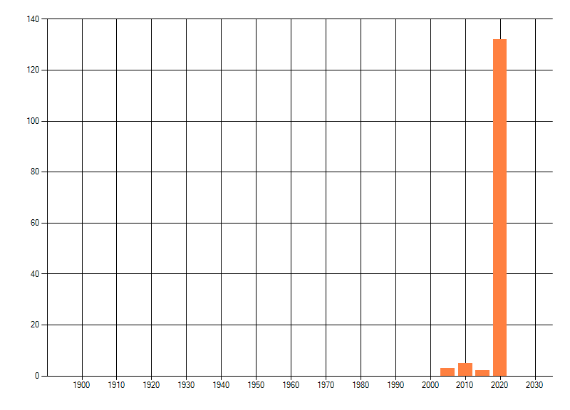 Het aantal atlasblokken (5x5 km) waarin de soort is gemeld binnen een periode van vijf jaar (vanaf 1980) of twintig jaar. Niet gecorrigeerd voor waarnemersinspanning en het aantal doorgegeven waarnemingen kan sterk variëren per periode, dus een trend in verspreiding kan hier niet direct uit worden afgelezen. Het opgegeven jaartal is het eerste jaar van de periode. Bron: gevalideerde waarnemingen uit de NDFF.