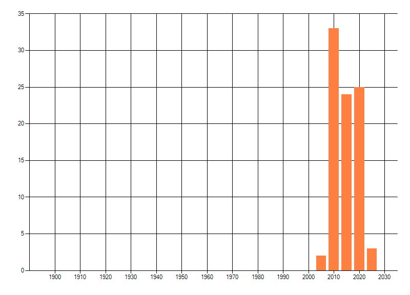 Het aantal atlasblokken (5x5 km) waarin de soort is gemeld binnen een periode van vijf jaar (vanaf 1980) of twintig jaar. Niet gecorrigeerd voor waarnemersinspanning en het aantal doorgegeven waarnemingen kan sterk variëren per periode, dus een trend in verspreiding kan hier niet direct uit worden afgelezen. Het opgegeven jaartal is het eerste jaar van de periode. Bron: gevalideerde waarnemingen uit de NDFF.