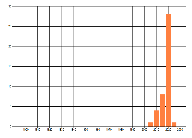 Het aantal atlasblokken (5x5 km) waarin de soort is gemeld binnen een periode van vijf jaar (vanaf 1980) of twintig jaar. Niet gecorrigeerd voor waarnemersinspanning en het aantal doorgegeven waarnemingen kan sterk variëren per periode, dus een trend in verspreiding kan hier niet direct uit worden afgelezen. Het opgegeven jaartal is het eerste jaar van de periode. Bron: gevalideerde waarnemingen uit de NDFF.