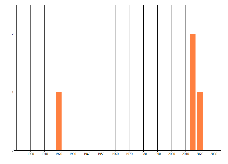 Het aantal atlasblokken (5x5 km) waarin de soort is gemeld binnen een periode van vijf jaar (vanaf 1980) of twintig jaar. Niet gecorrigeerd voor waarnemersinspanning en het aantal doorgegeven waarnemingen kan sterk variëren per periode, dus een trend in verspreiding kan hier niet direct uit worden afgelezen. Het opgegeven jaartal is het eerste jaar van de periode. Bron: gevalideerde waarnemingen uit de NDFF.