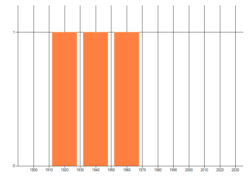 Het aantal atlasblokken (5x5 km) waarin de soort is gemeld binnen een periode van vijf jaar (vanaf 1980) of twintig jaar. Niet gecorrigeerd voor waarnemersinspanning en het aantal doorgegeven waarnemingen kan sterk variëren per periode, dus een trend in verspreiding kan hier niet direct uit worden afgelezen. Het opgegeven jaartal is het eerste jaar van de periode. Bron: gevalideerde waarnemingen uit de NDFF.