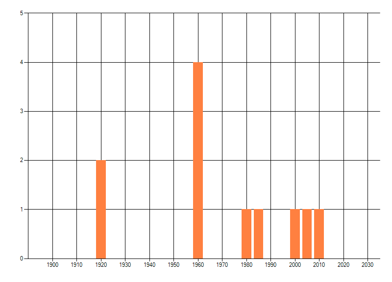 Het aantal atlasblokken (5x5 km) waarin de soort is gemeld binnen een periode van vijf jaar (vanaf 1980) of twintig jaar. Niet gecorrigeerd voor waarnemersinspanning en het aantal doorgegeven waarnemingen kan sterk variëren per periode, dus een trend in verspreiding kan hier niet direct uit worden afgelezen. Het opgegeven jaartal is het eerste jaar van de periode. Bron: gevalideerde waarnemingen uit de NDFF.