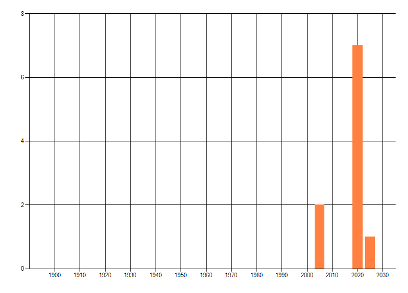 Het aantal atlasblokken (5x5 km) waarin de soort is gemeld binnen een periode van vijf jaar (vanaf 1980) of twintig jaar. Niet gecorrigeerd voor waarnemersinspanning en het aantal doorgegeven waarnemingen kan sterk variëren per periode, dus een trend in verspreiding kan hier niet direct uit worden afgelezen. Het opgegeven jaartal is het eerste jaar van de periode. Bron: gevalideerde waarnemingen uit de NDFF.