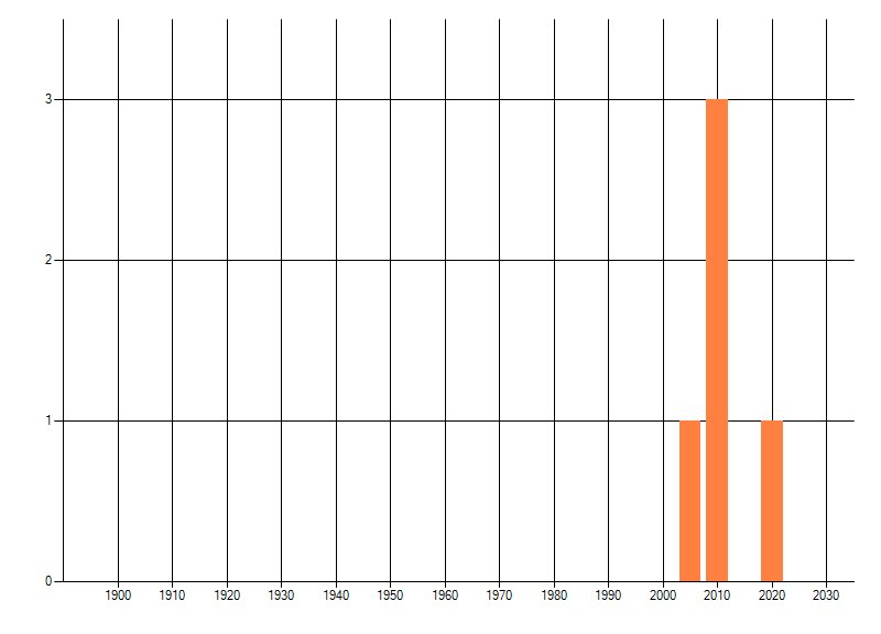 Het aantal atlasblokken (5x5 km) waarin de soort is gemeld binnen een periode van vijf jaar (vanaf 1980) of twintig jaar. Niet gecorrigeerd voor waarnemersinspanning en het aantal doorgegeven waarnemingen kan sterk variëren per periode, dus een trend in verspreiding kan hier niet direct uit worden afgelezen. Het opgegeven jaartal is het eerste jaar van de periode. Bron: gevalideerde waarnemingen uit de NDFF.