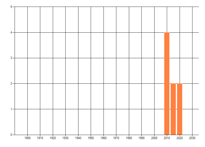 Het aantal atlasblokken (5x5 km) waarin de soort is gemeld binnen een periode van vijf jaar (vanaf 1980) of twintig jaar. Niet gecorrigeerd voor waarnemersinspanning en het aantal doorgegeven waarnemingen kan sterk variëren per periode, dus een trend in verspreiding kan hier niet direct uit worden afgelezen. Het opgegeven jaartal is het eerste jaar van de periode. Bron: gevalideerde waarnemingen uit de NDFF.