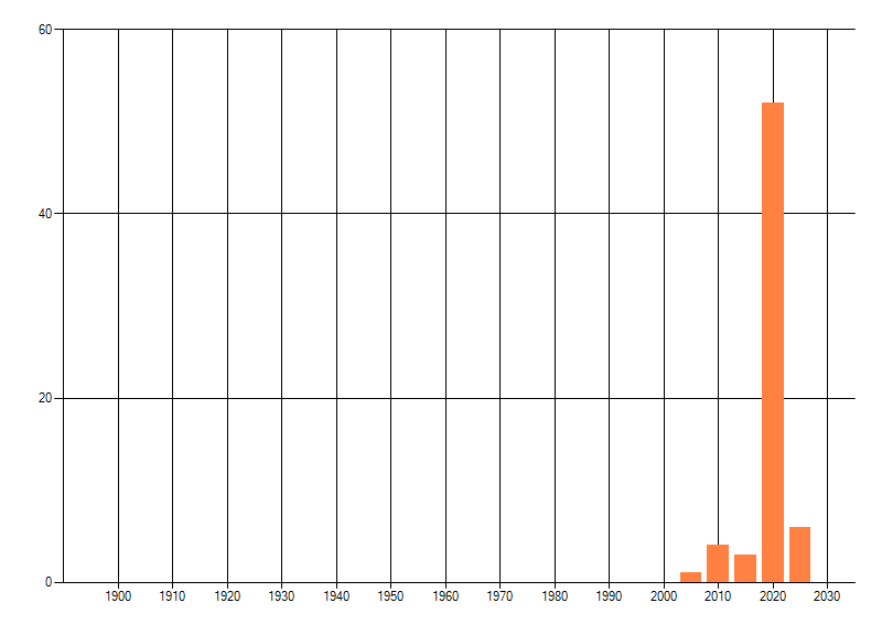 Het aantal atlasblokken (5x5 km) waarin de soort is gemeld binnen een periode van vijf jaar (vanaf 1980) of twintig jaar. Niet gecorrigeerd voor waarnemersinspanning en het aantal doorgegeven waarnemingen kan sterk variëren per periode, dus een trend in verspreiding kan hier niet direct uit worden afgelezen. Het opgegeven jaartal is het eerste jaar van de periode. Bron: gevalideerde waarnemingen uit de NDFF.