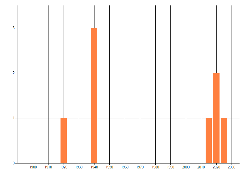 Het aantal atlasblokken (5x5 km) waarin de soort is gemeld binnen een periode van vijf jaar (vanaf 1980) of twintig jaar. Niet gecorrigeerd voor waarnemersinspanning en het aantal doorgegeven waarnemingen kan sterk variëren per periode, dus een trend in verspreiding kan hier niet direct uit worden afgelezen. Het opgegeven jaartal is het eerste jaar van de periode. Bron: gevalideerde waarnemingen uit de NDFF.